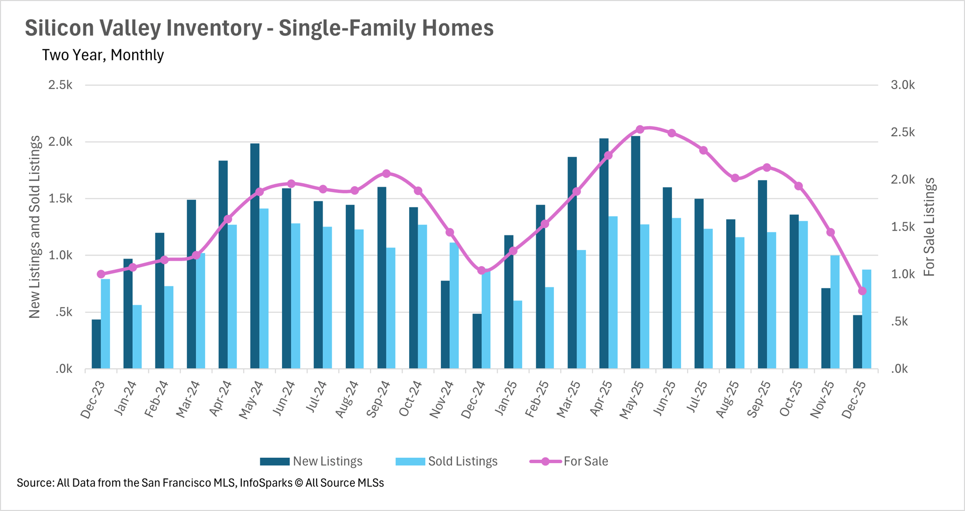 Inventory contracted quickly during the holiday period, with many regions seeing 20–40% year-over-year declines, pushing conditions back toward seller-favorable territory. San Francisco led the region, posting notable price gains and extremely limited inventory, while other areas showed more mixed results with pockets of softness.