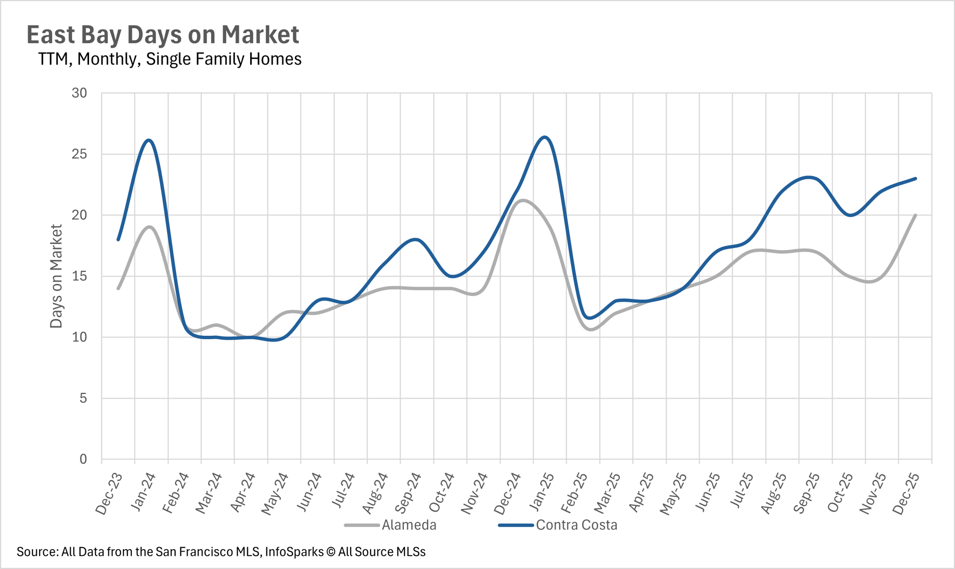 Days on market varied widely across the region. Some markets moved faster despite limited supply, while others slowed as buyers became more selective — reinforcing just how localized Bay Area real estate remains.