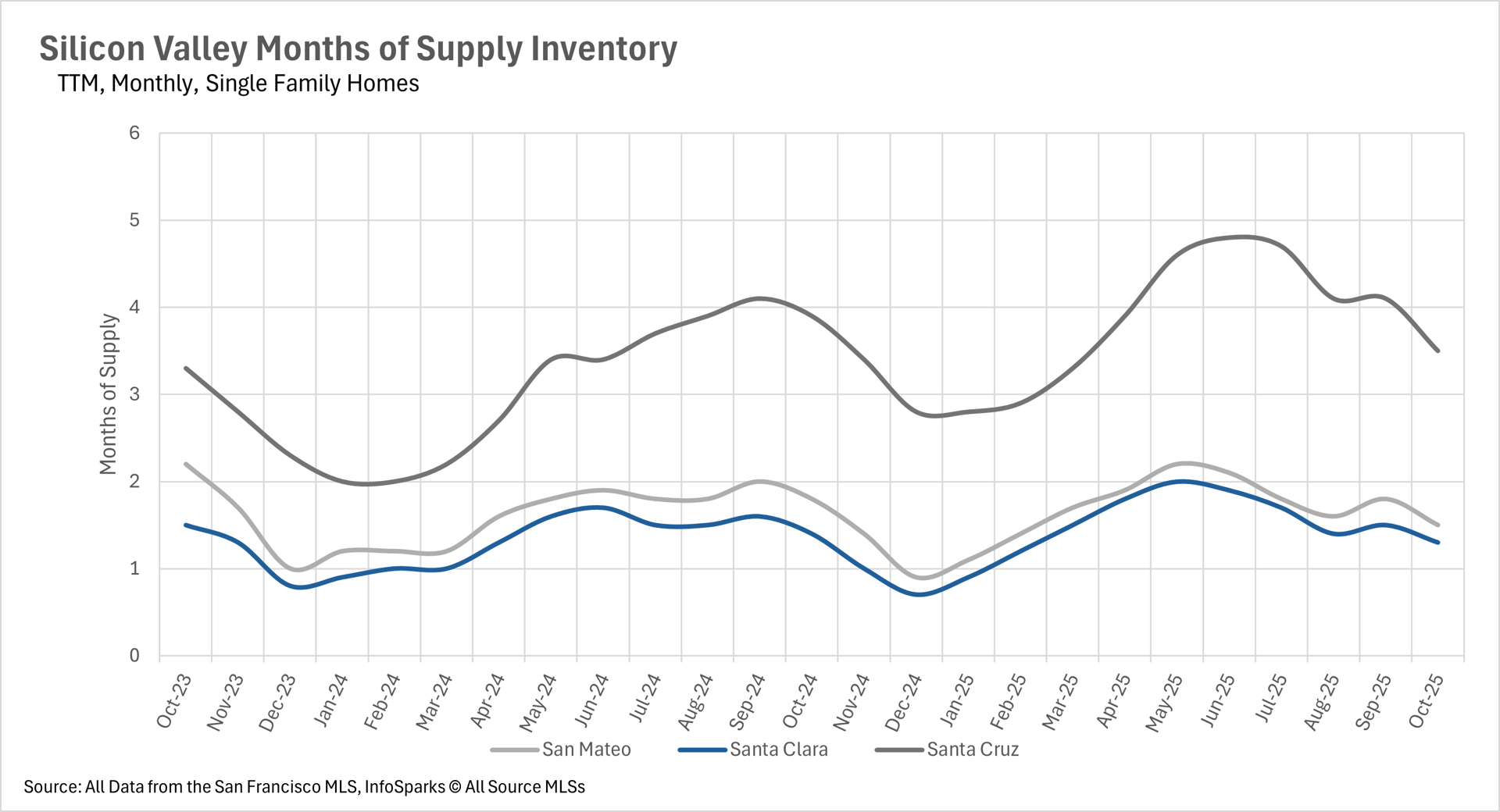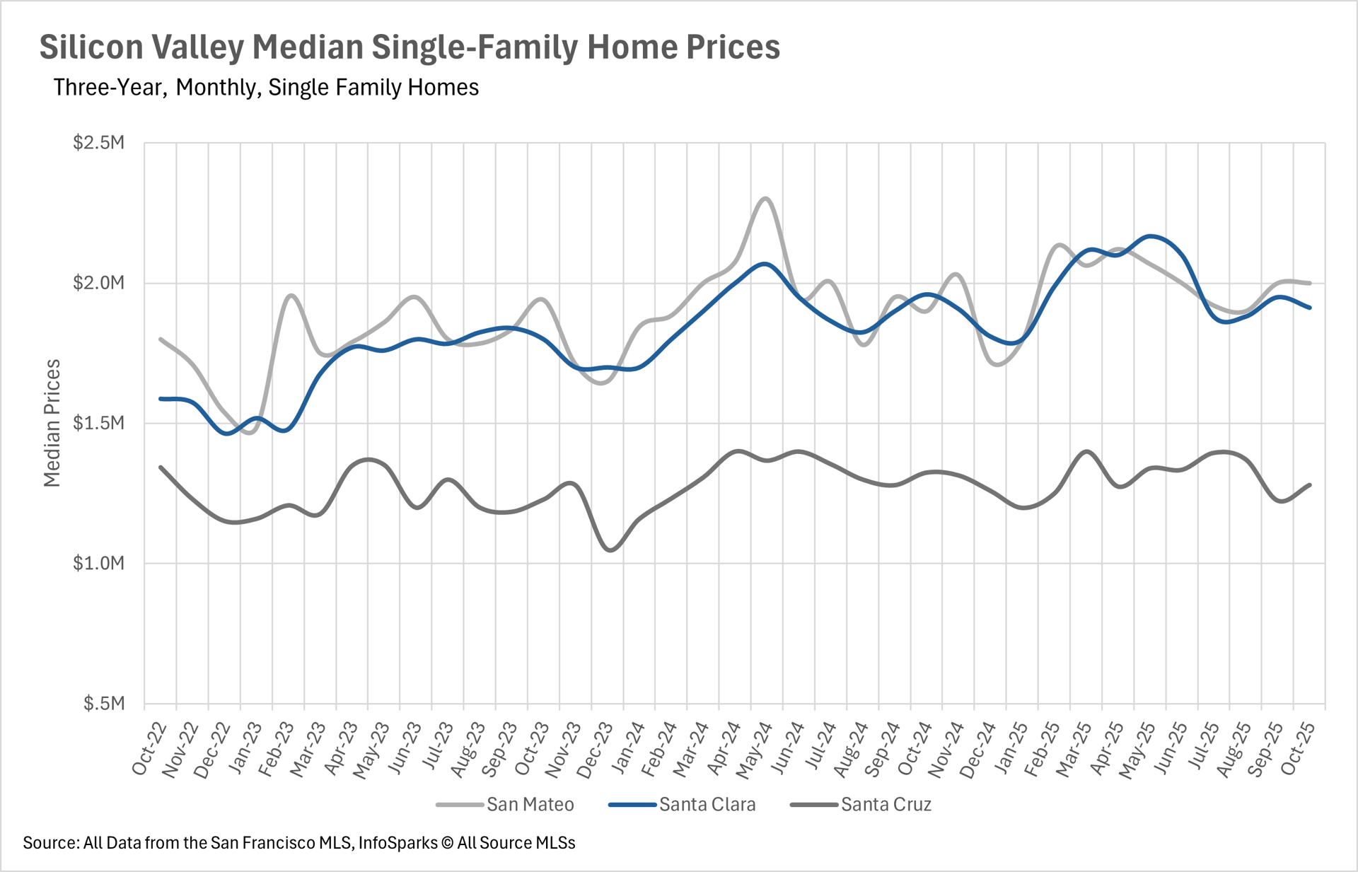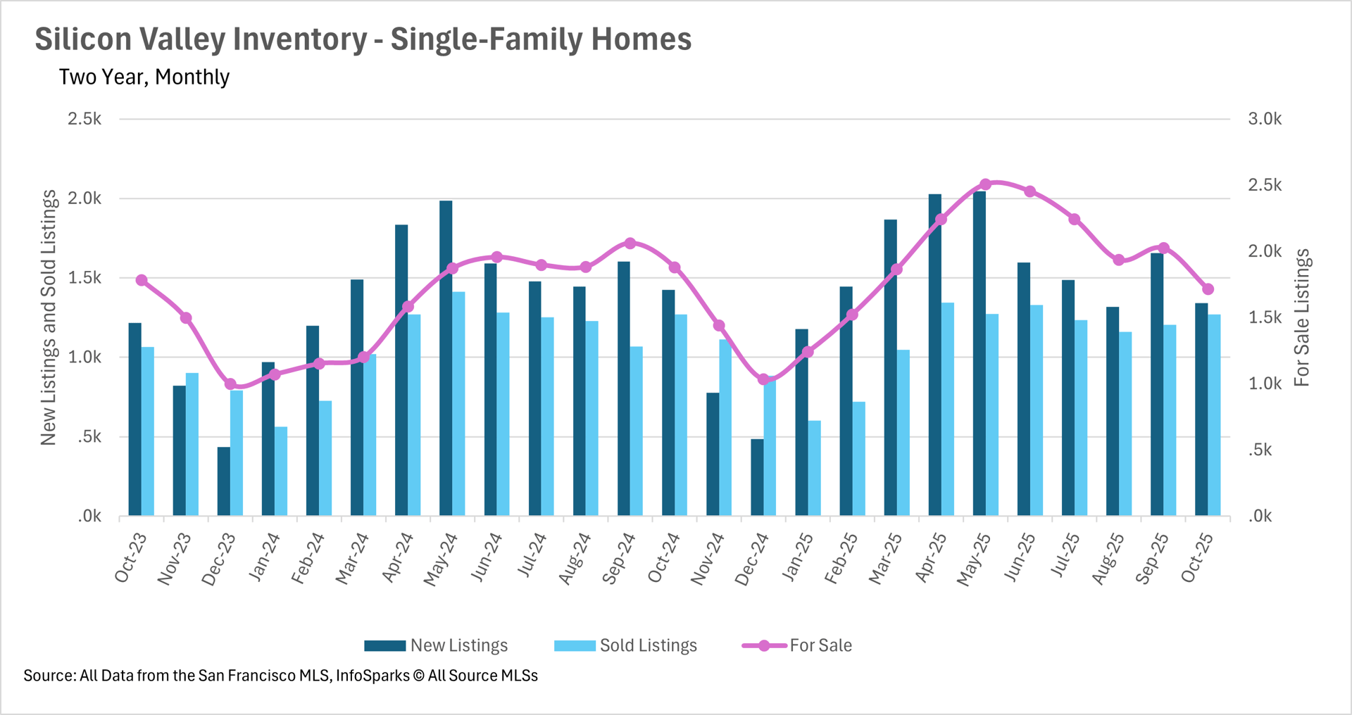The market is finally giving buyers a bit of breathing room. With mortgage rates drifting down toward the low 6s and another potential rate cut on the horizon, affordability is slowly improving. Inventory is holding steady nationwide, and we’re starting to see the first hints of balance return after a high-pressure year. But as always, Silicon Valley has its own rhythm — and here’s what the local data is telling us.