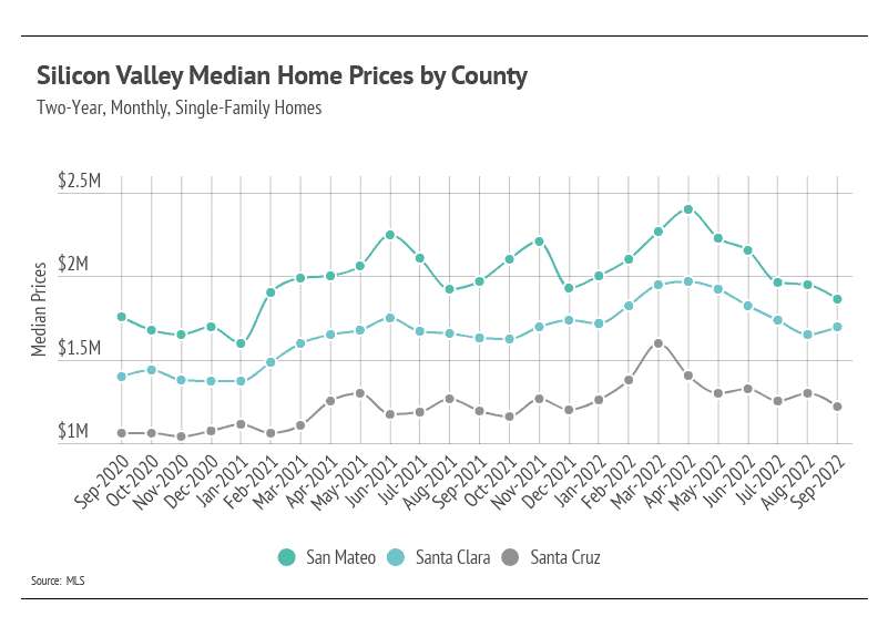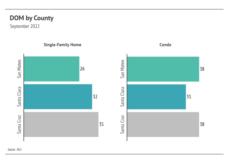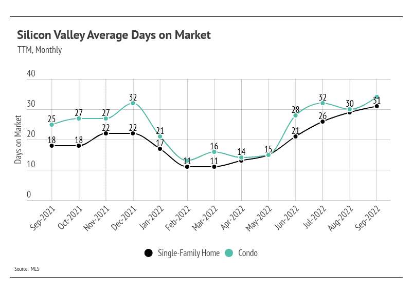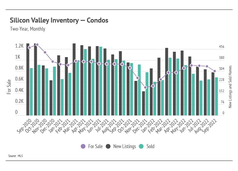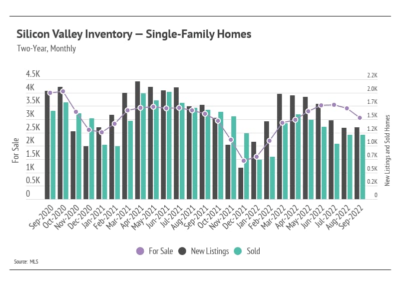 Sales increased month-over-month, while total new listings declined. This caused inventory to decline further, a trend that will likely continue through the rest of the year. Silicon Valley, along with the rest of the country, has not returned to pre-pandemic inventory levels. Homes have generally sold faster over the past two years, making new listings more and more important to the market. Inventory generally grows when new listings increase or homes sit on the market. With rates rising at such a rapid pace, new listings are slowing considerably, having dropped 26% from the second quarter of 2022 to the third. Last year, they only dropped 11%. We can tie new listings not only to supply, but to demand as well, because sellers are often buying, too. Softening demand has brought the market closer to balance despite low inventory.