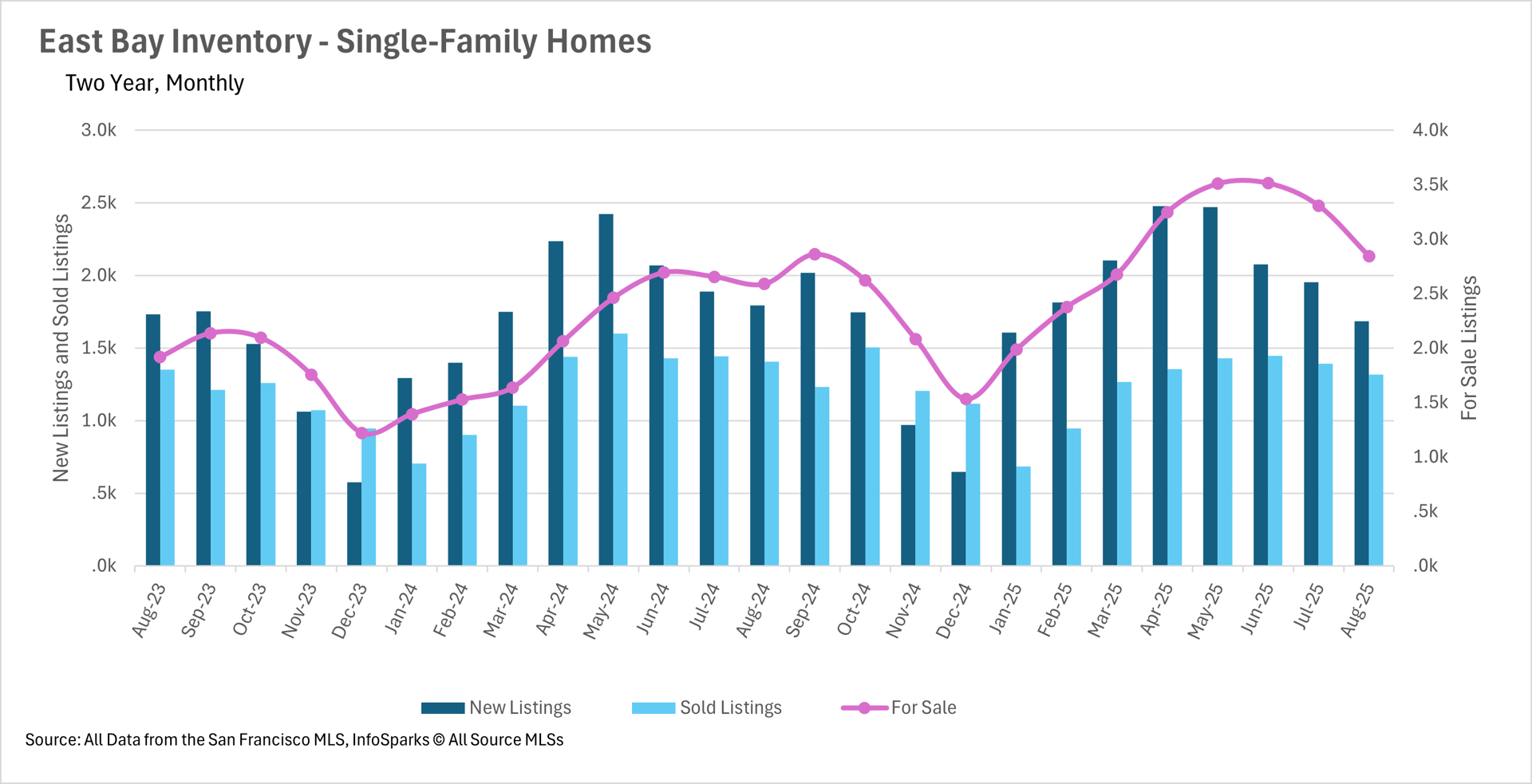 Housing inventory is still elevated compared to last year. But if rates keep falling, more buyers may step in, reducing supply and potentially driving prices upward again.