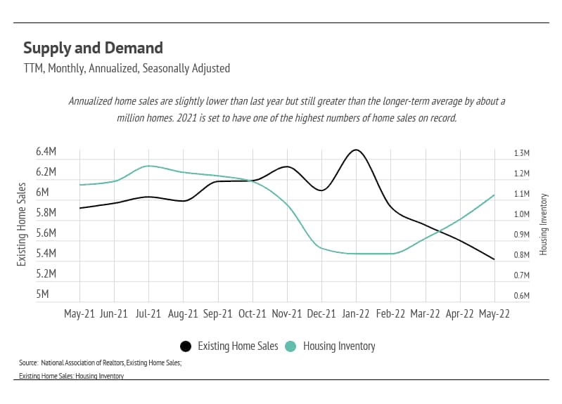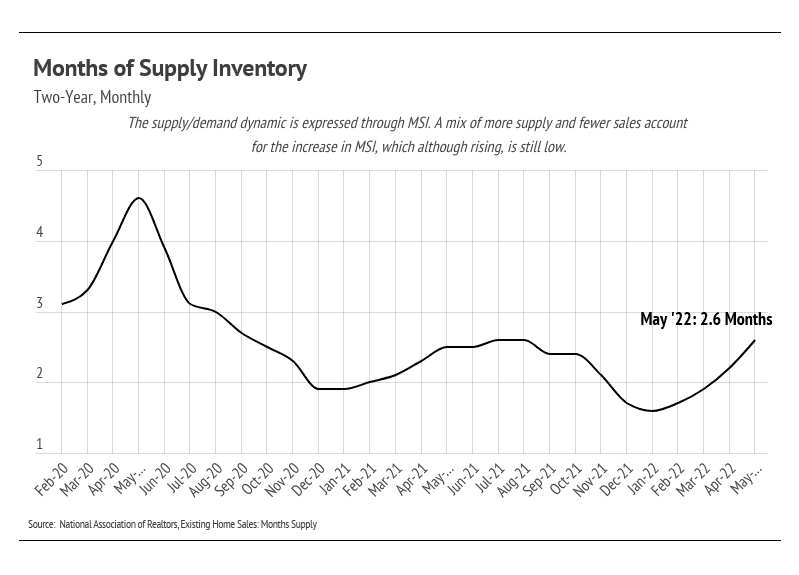 - The Fed rate hikes are dampening demand, allowing much-needed inventory to rise, although inventory remains far from the pre-pandemic supply norms.