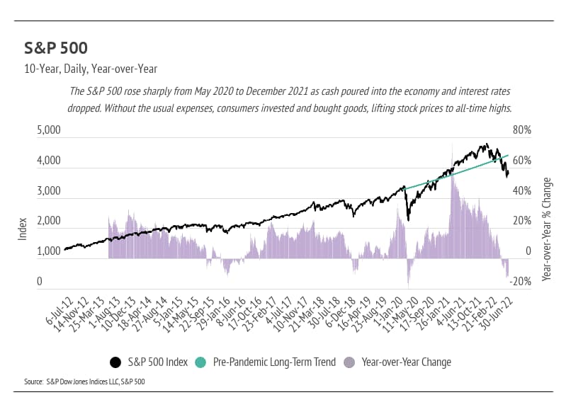 Economic outlooks seem to change month-to-month, and yet again, we find ourselves in a unique moment in time. The Fed rapidly switched from loose to contractionary monetary policy in March and recently increased the federal funds rate by 0.75% — the biggest increase since 1994. The effects have yet to curb inflation, which is still at a 40-year high (+8.5% CPI year-over-year). On a monthly basis, the Bureau of Labor Statistics (BLS) collects the prices of approximately 94,000 items from a sample of goods and services to calculate the Consumer Price Index (CPI). We didn’t look into everything in the BLS sample, but if you’re like us, it feels like everything we buy is closer to 50–100% higher than it was a year ago, or even several months ago. While prices are rising, the cost to borrow has also gotten more expensive, which is dampening demand.